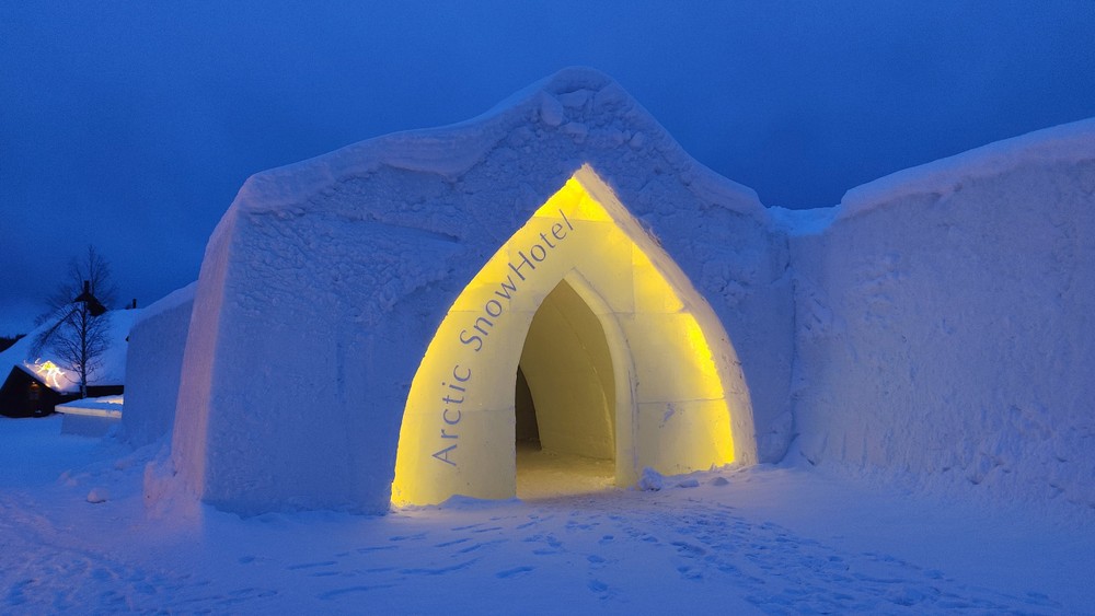 The Arctic Snow Hotel is one of the largest snow hotels in the world and can accommodate approximately 70 guests. This spectacularly beautiful attraction and landmark opens every year on December 15 and is re-carved each year with a different appearance. Hotel room temperatures are 0–5C° and sleeping bags designed for extreme conditions are available to ensure guests stay warm and comfortable during their stay. The hotel is built on the lakeside. On a clear night, the moonlight, stars and northern lights illuminate the silent nature of Lapland.
