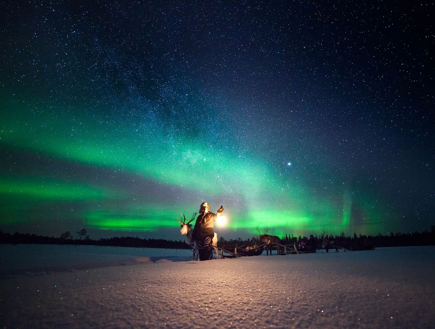 前往隐藏在拉普兰原始森林中的传统驯鹿农场,与温顺的驯鹿近距离接触。登上木制驯鹿雪橇,沿着萨米人数千年来使用的雪道滑行,穿越银装素裹的森林。四周环绕着宁静与冬日魔力,这段悠缓的旅程为您呈现真正地道的北极体验。